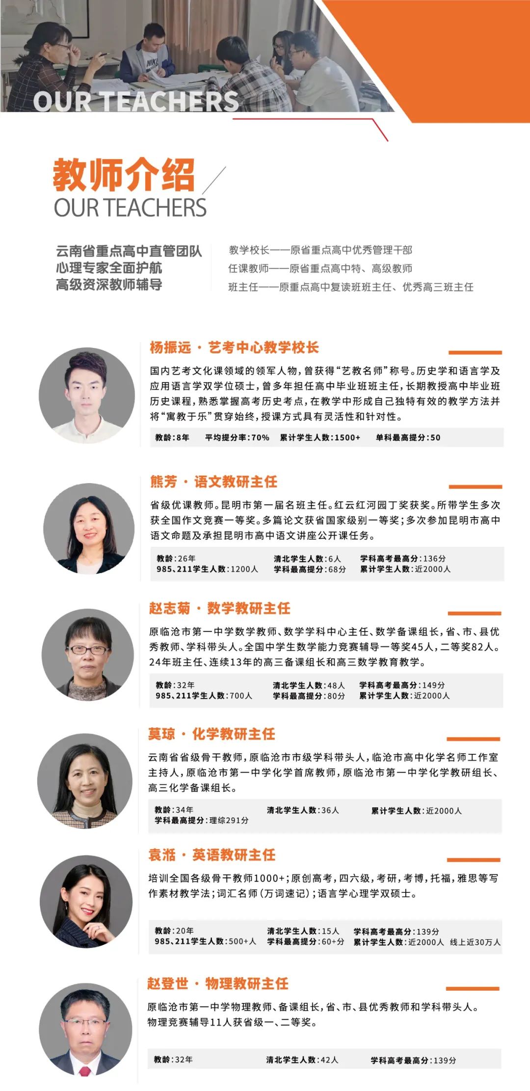 所有教师均是来自一线的优秀教师,有丰富的艺考生高考教学经验,其中不乏高级教师,正高级教师等各名校教研组长,有多位教师参与过模拟题命题与高考阅卷。所有老师均在一线教学,每日与学生同吃同住,能够详细了解每一位学生的学业情况,制定有针对性的教学计划。