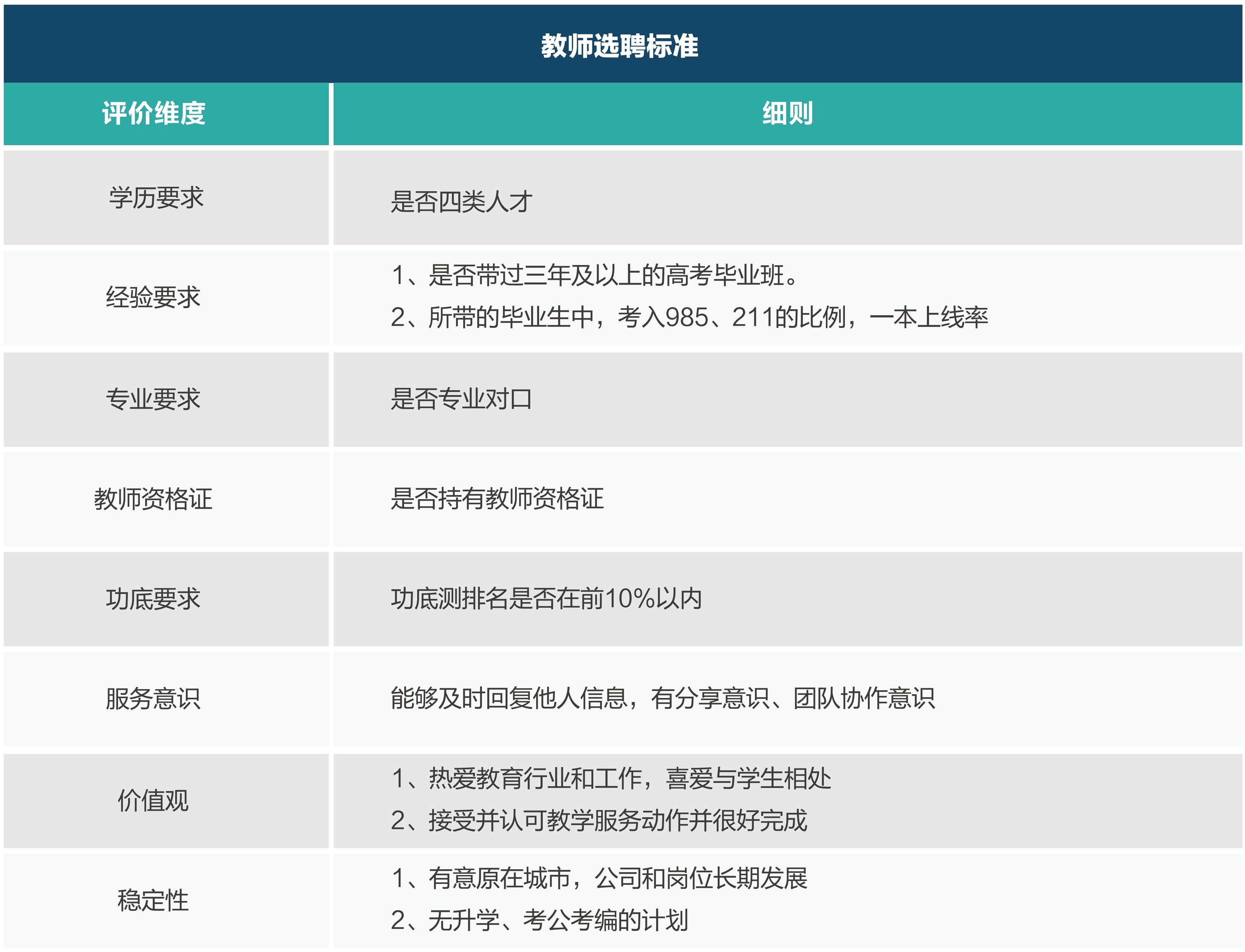 全日制高考学习中心在师资筛选上有极为严格的标准,成为一名合格的新东方老师需要经历“四面-四培-三审”的考核流程。在成为一名合格的新东方老师之后,要成为全日制高考学习中心梯队的老师又需要经过学科组对其经验、功底、绩效、留存等情况的重重考核与筛选。在教学过程中学科组跟盯课堂教学质量,严抓课后反馈,细查周测月测分析,督促教学计划落实情况。在学员管理过程中具备精细化的管理模式,对学生档案、日常管理、反馈回访、活动组织等方面的管理周全到位,根据学生类型制定个性化管理模式。